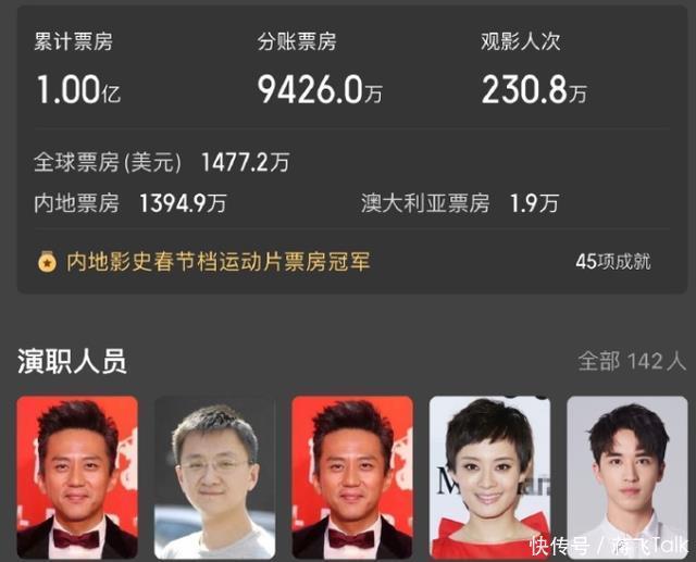 完全可以预测到,《女足》的票房也就是在这之间浮动。 可以看到投资人组局的时候就想着不能扑街,于是既找了50亿票房《你好,李焕英》的女主角张小斐,又找了38亿票房《孤注一掷》的男主张艺兴。